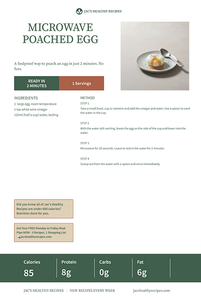 Sometimes you just need to know how to poach an egg properly without the usual faff. This microwave method works every time and takes just 2 minutes from start to finish. The vinegar helps the white set quickly, and the gentle heat means no overcooked edges or rubbery texture. It’s handy for a quick breakfast, adding protein to salads, or just classic on toast (with or without marmite!)