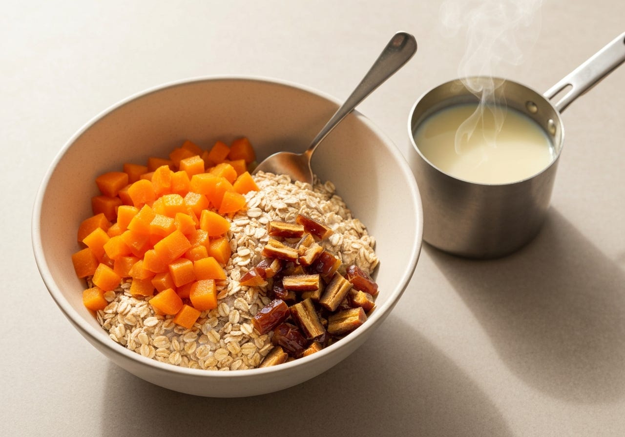Mix the oats, apricots and dates in a mixing bowl.