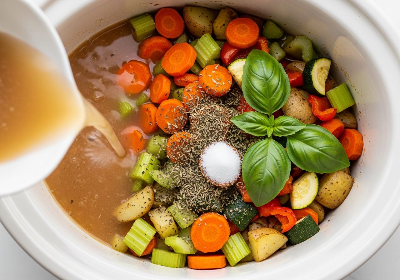 Add the carrots, celery, stock, sugar, dried mixed herbs and basil. Cook on low for 6-8 hours or on high for 2-3 hours.