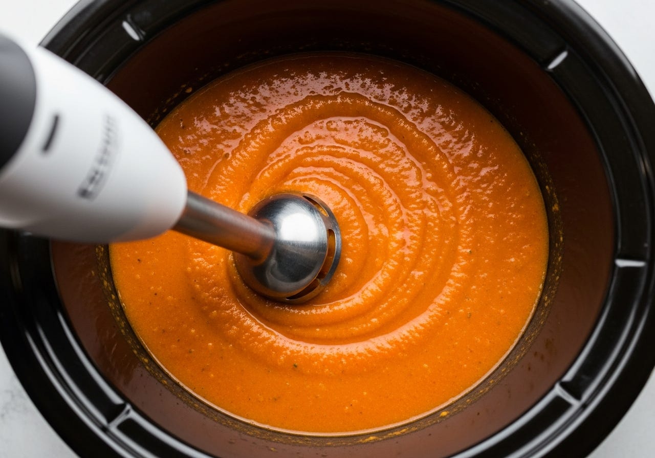 Roasted vegetables blended into a smooth, comforting soup. Easy to make and batch cooking friendly.