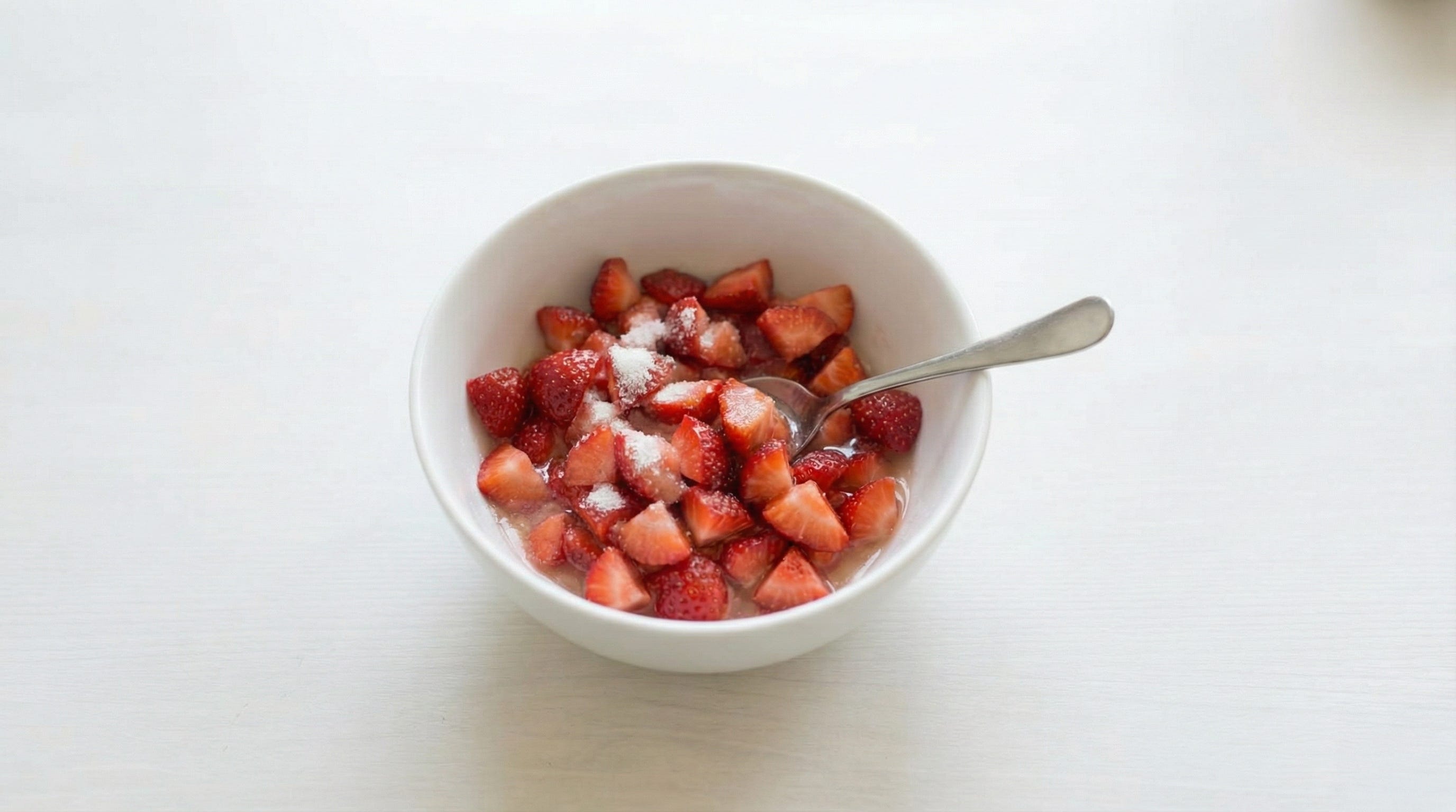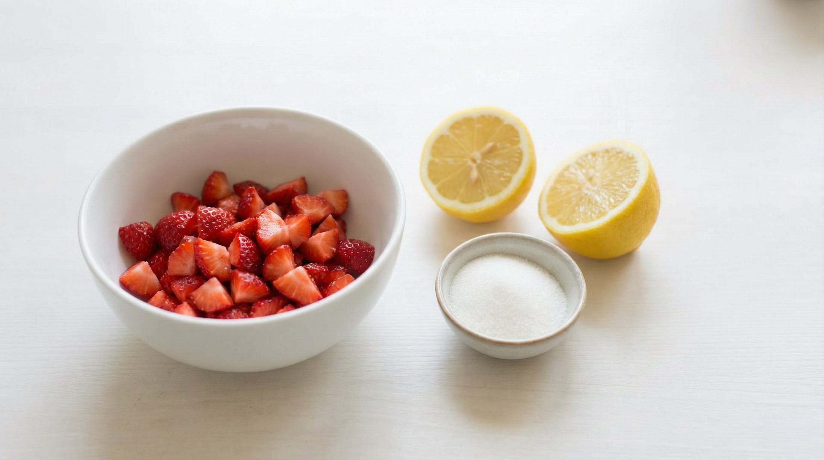 Add the strawberries to the lemon juice and add the sugar. Stir together and leave, covered, to sit for 2-3 hours. This allows for the strawberry juice to be released.
