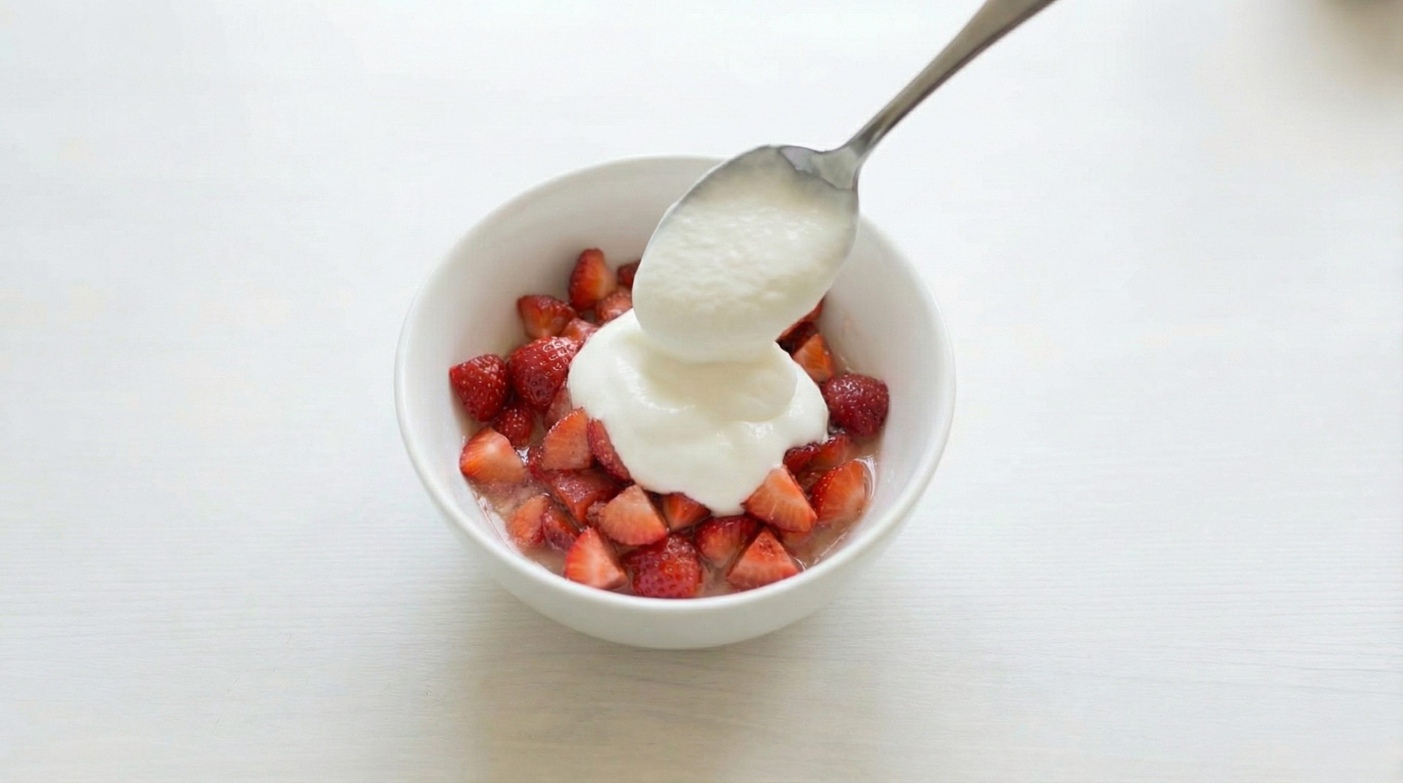Stir the strawberries before adding all the skyr and stirring slowly to combine.