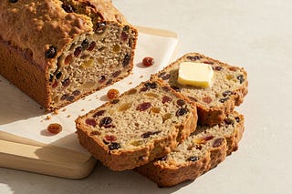A dense, fruity loaf packed with dates and raisins. Perfect for breakfast or an afternoon slice.