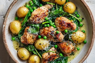Lemon chicken, soft potatoes and greens. A simple, balanced dinner for busy evenings.
