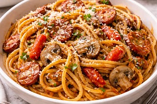 Chorizo and Mushroom Spaghetti - rich, quick and comforting